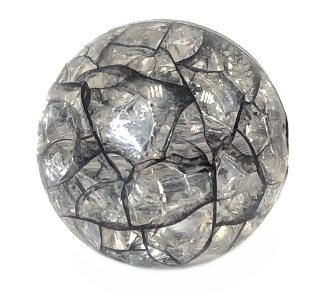 Ice bead 20 mm. Unusual plastic bead with a special iced-crashoptik. Hole size 2,5 mm. Thus it also fits on our steel rope colliers with plug-in closure up to 7 rows.