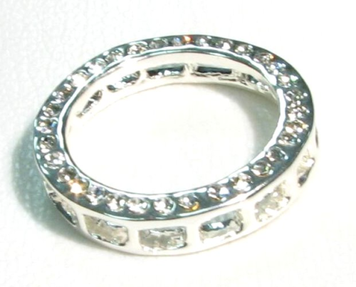 The gold-plated pendant is set with about 32 clearly sparkling crystal stones all around. It has a size of approx.24.5 m and an inner dimension of approx.17.5mm. It has holes all around and can be used very variablely. The holes have a size of approx.2.2mm. It fits our steel rope colliers with plug-in closure up to 7 rows. In the middle of the pendant you can put a bead up to a size of 16 mm and pull it through the necklace (see model photo: Steel rope collier 3-row + 16 mm polaris bead with small hole)