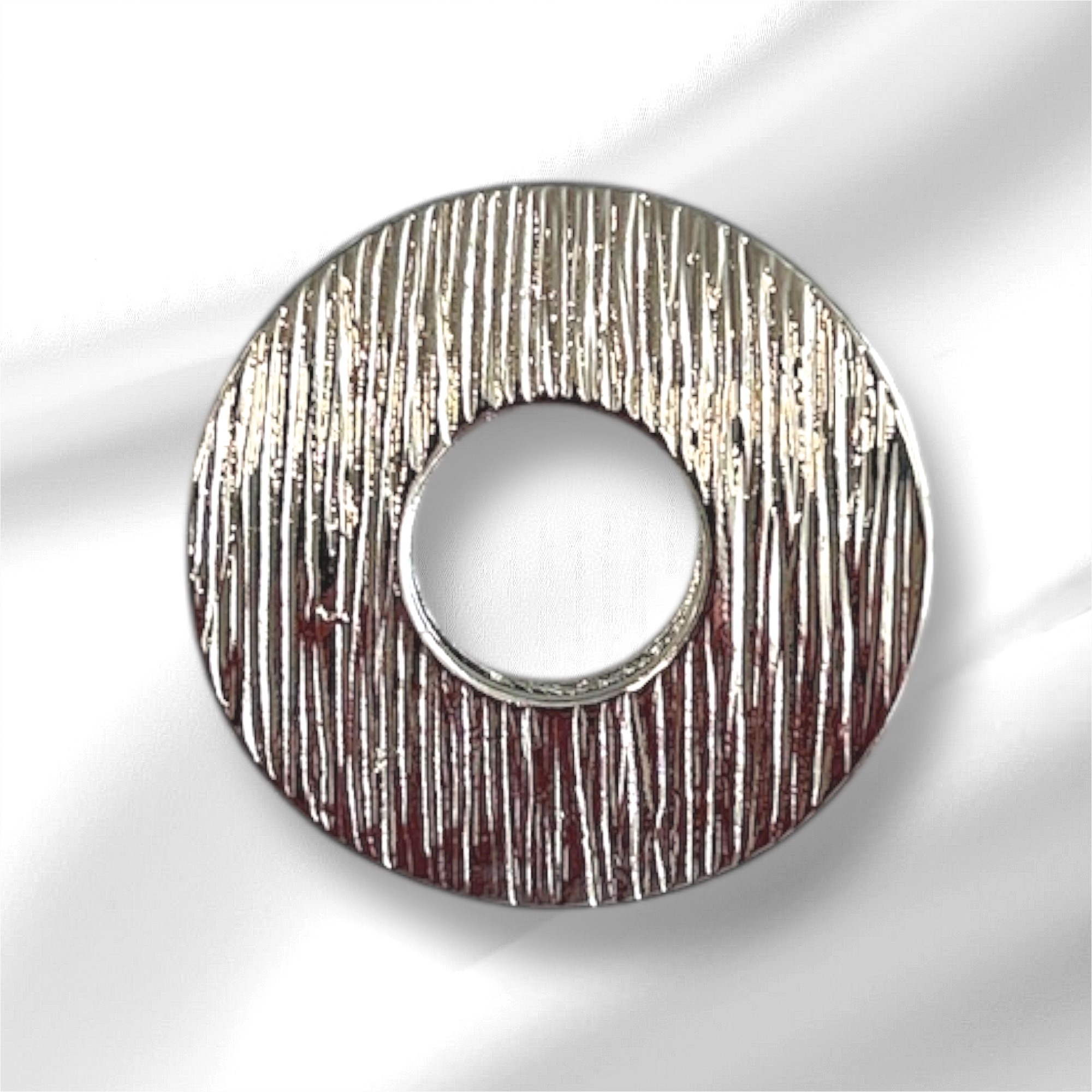Variously combinable rhodium-plated pendant. The pendant has a size of about 26 mm and an interior for beads up to 10 mm in size.