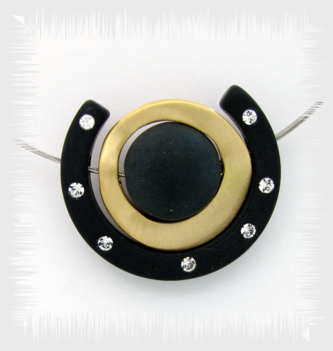 The silver plated pendant has a size of approx.22 mm and a hole size of approx.2.7mm. It fits our steel rope colliers with plug-in closure up to 7 rows. In the middle of the pendant you can insert beads up to a size of 14 mm and pull them through the necklace. Furthermore, this beginner is also very nice in the combination with our large Polarishufeisen (see model photos). This is only the individually depicted pendant. The necklace and the beads (a.o. used here: 14 mm mamor effect bead or large Polarishufeisen with 14 mm Polarisbead) can also be found in our shop.