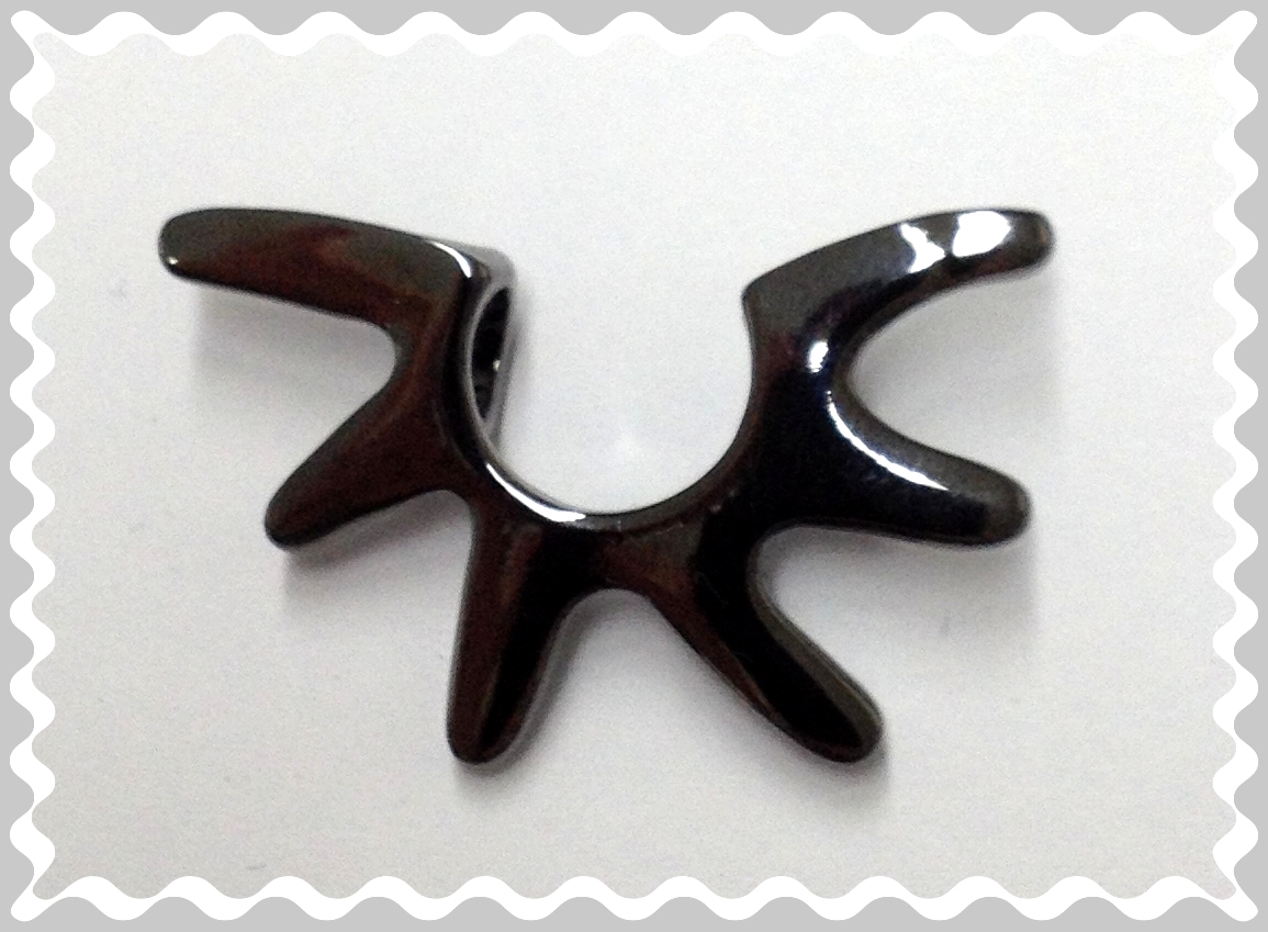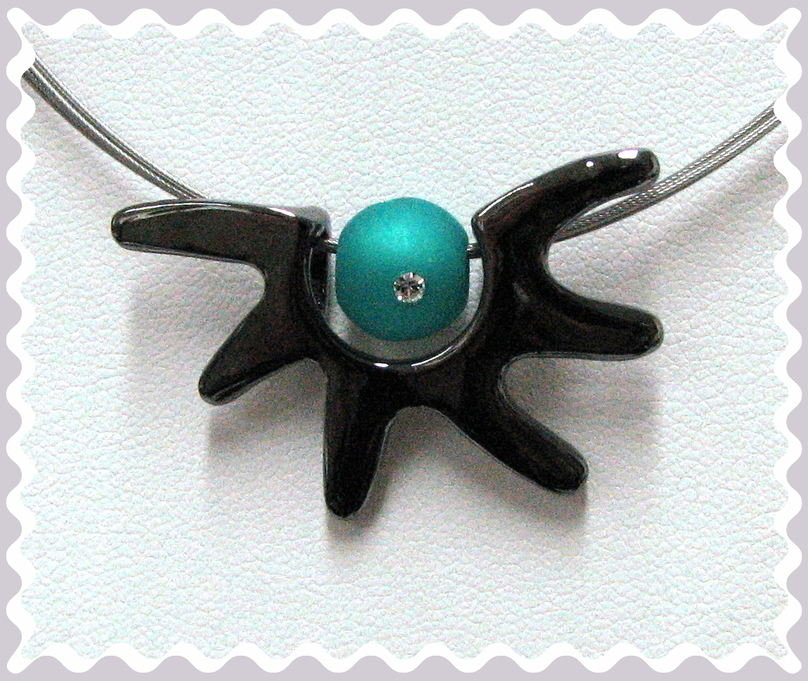 Appendants blackened. The pendant has a size of approx.35mmx25 mm and a hole size of approx.3,8mm. It fits our steel rope colliers with plug-in closure up to 7 rows and our 2 mm rubber colliers with click closure. In the middle of the pendant you can put a 8-10 mm bead and pull it through the necklace (see model photo) This is only the pendant. The necklace and beads (a.o.8 mm Polaris double cone or 10 mm Polaris round bead) can also be found in our shop. All blackened creative pendants are smooth, evenly colored and highly glossy. Spots and shades on the pictures are phototechnical and not on the pendants.