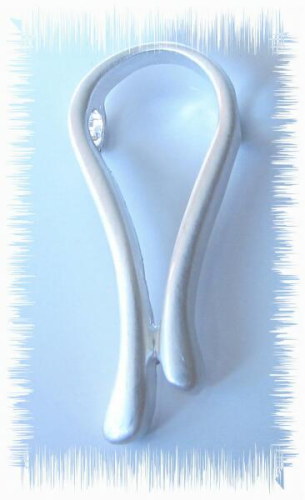 Pendant silver plated. The pendant has a size of approx.3,7x1,5 cm and a hole size of approx.3,1mm. It fits our steel rope colliers with plug-in closure up to 7-row and our 2 mm rubber colliers with click closure. In the middle of the pendant you can put a 10 mm bead and pull it through the necklace (see model photo). This is only the pendant. The necklace and beads (a.o. 10 mm Polarisbead) can also be found in our shop.